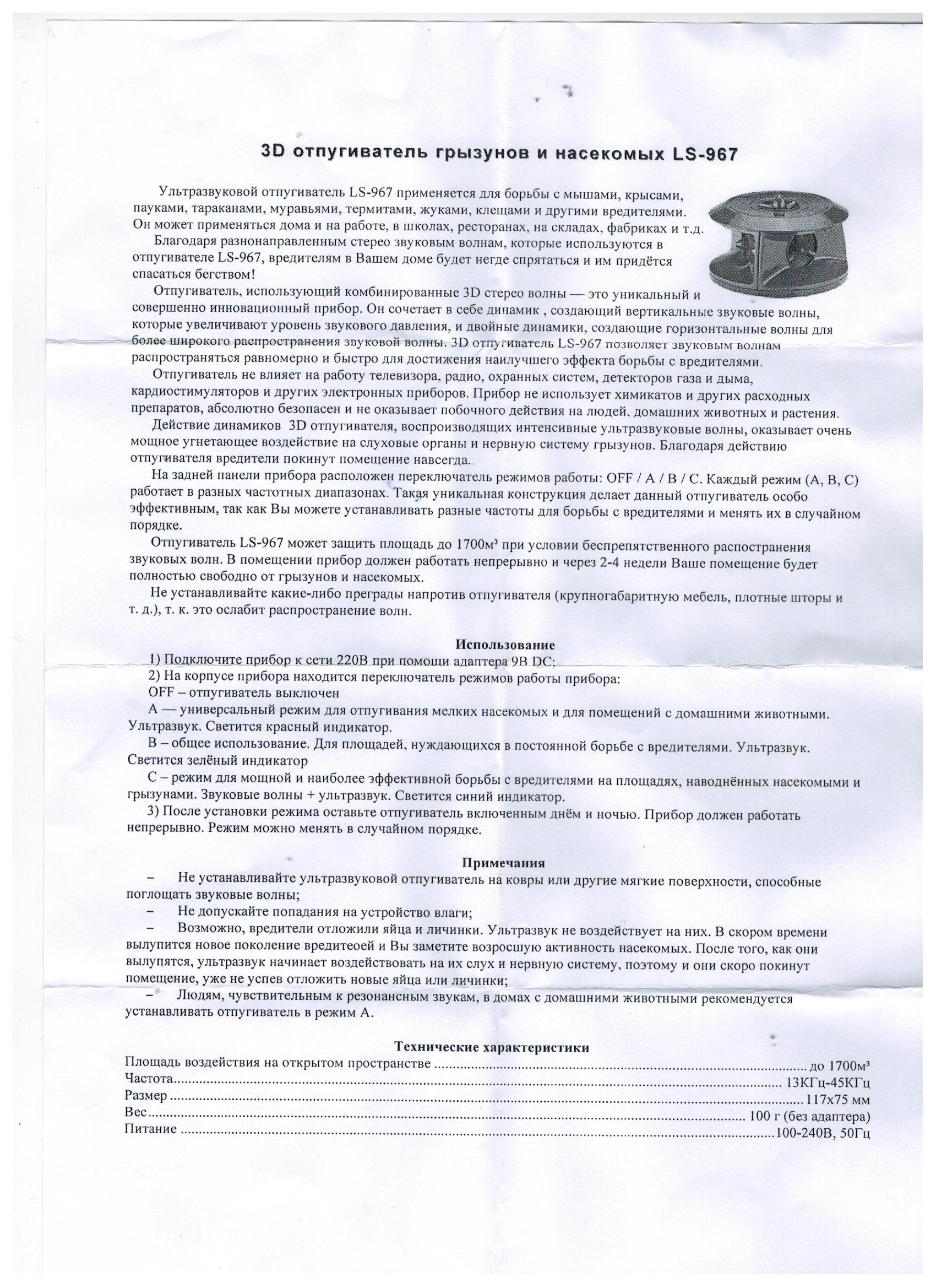 Круговое распространение специальных волн обеспечивает эффективное отпугивание грызунов на площади не более 1700 кубических метров.
